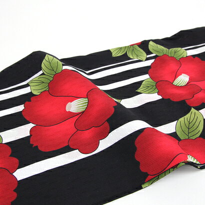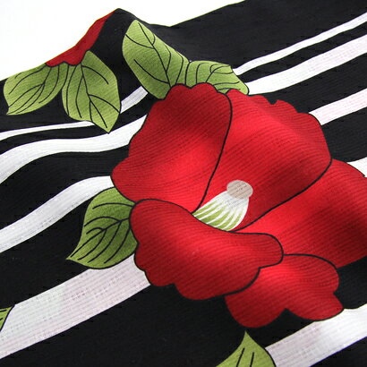 ・ 商品番号: N05731EW00041・ ブランド商品番号: ykt-113-f33-4503 黒地に白縦縞と赤椿・ ブランド名: なでしこぴーす・ 色: 黒地に白縦縞と赤椿・ 原産国: 日本・ 素材: 浴衣:綿100%