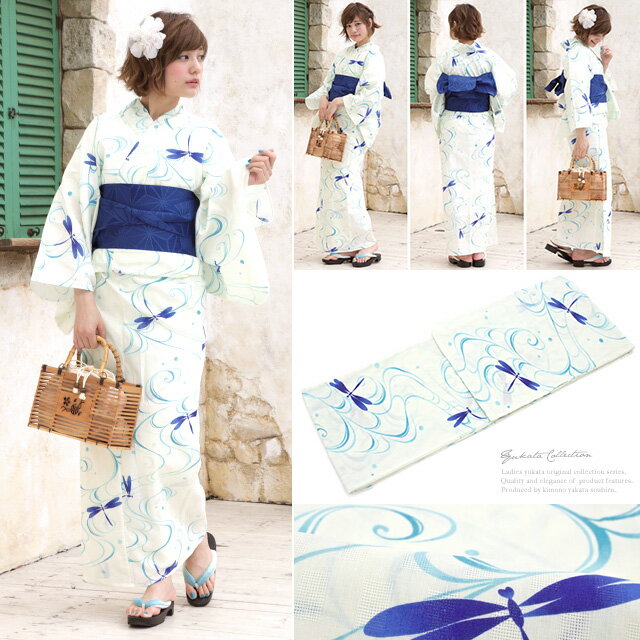 estimated delivery.bonheur saisons 浴衣セットアイボリーの地に、流水文とトンボの柄の涼感ある浴衣です。