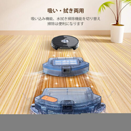吸い・拭き両用・6つ清掃モード・低騒音ロボット掃除機は一台二役独特の技術で水拭きと吸引掃除を切り替えます。