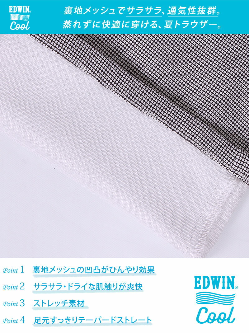 素材は、EDWIN COOL シリーズ定番のドライメッシュ裏地を採用。