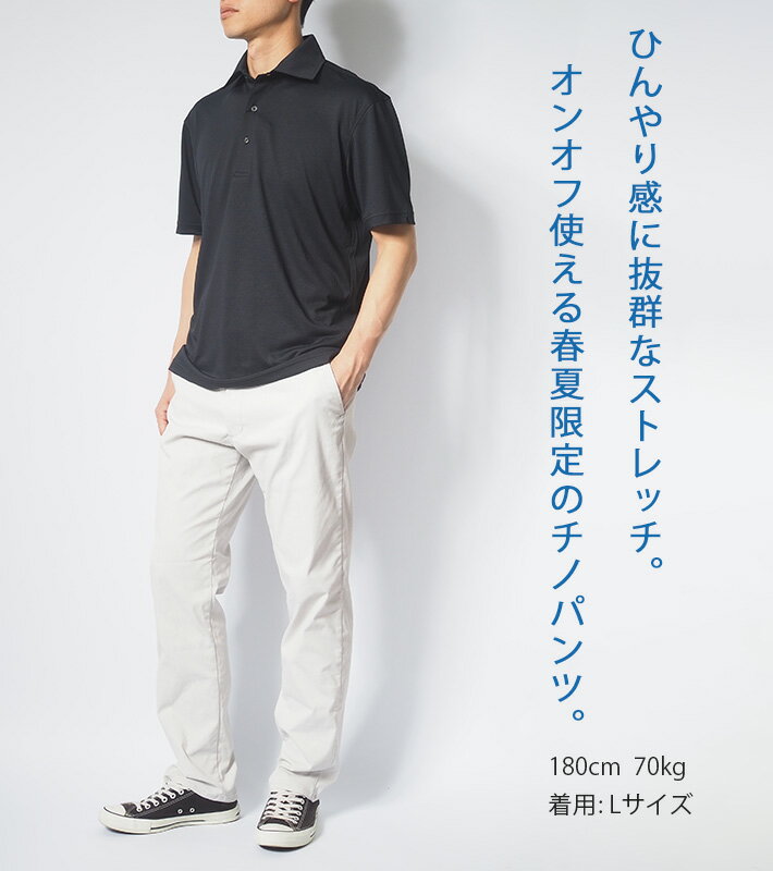 普段着はもちろん、ビジネスやゴルフなど、幅広いシーンで活躍してくれる涼しいチノパンツです。